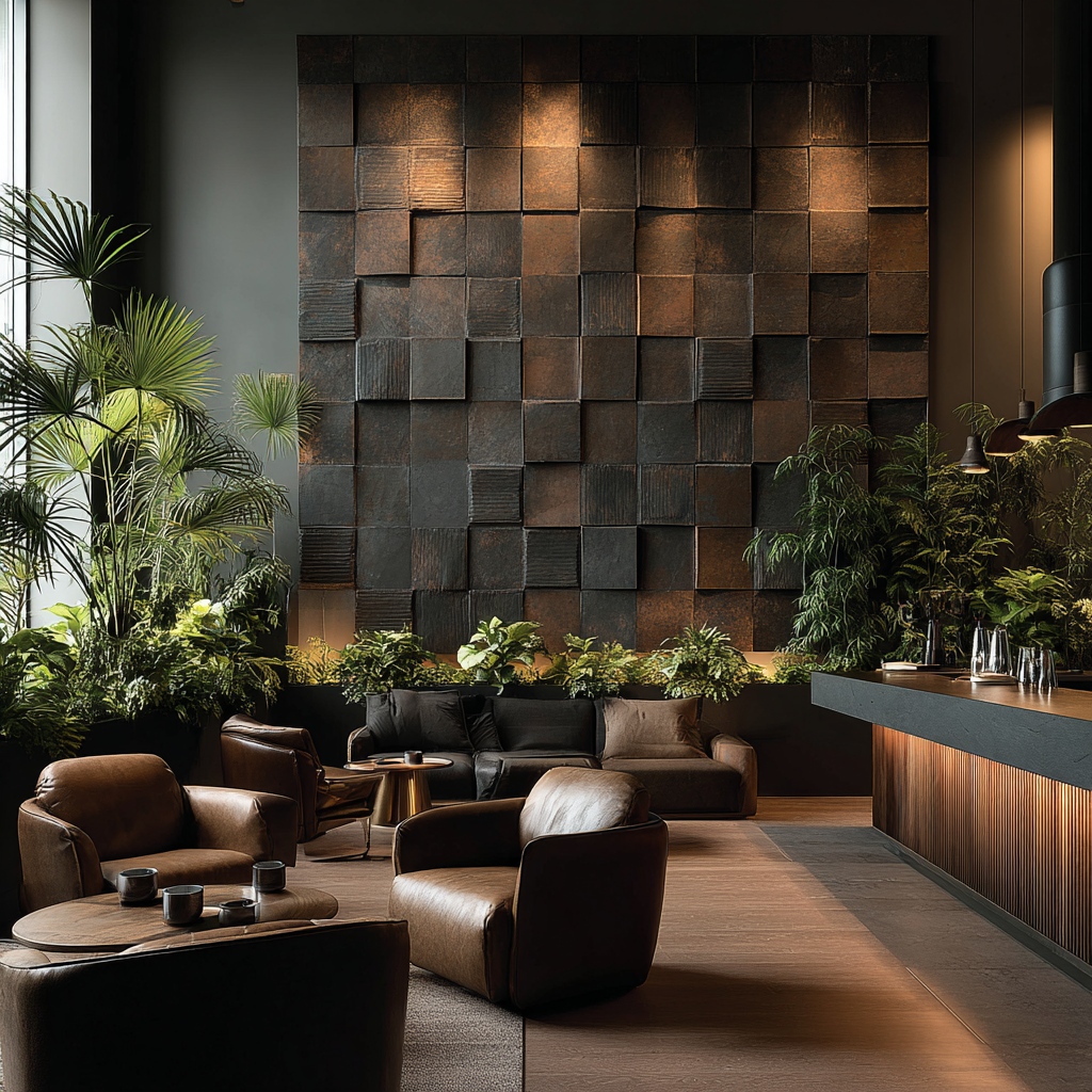 En la planta baja, con recepción, cafetería y zona coworking lounge, y en la entreplanta del restaurante, el concepto evoluciona hacia la cocción, con materiales y acabados que transmiten calidez, densidad y transformación. Finalmente, las plantas superiores de habitaciones se inspiran en el esmaltado, con acabados más suaves, elegantes y luminosos, creando un espacio contemporáneo pero conectado a la tradición.